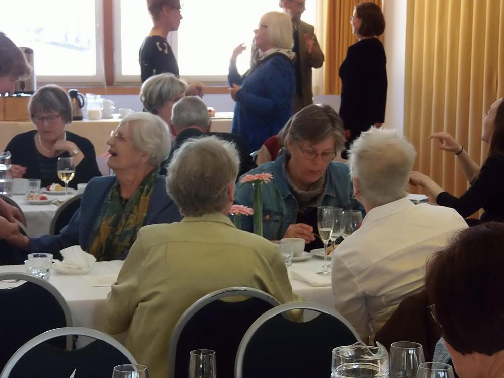 Yhdistyksen puheenjohtaja Päivi Liippola ja varapuheenjohtaja Erkki Kurtti vastanottivat vieraat. Tervetulomaljan jälkeen nautittiin erinomainen lounas. Perustajajäsen Hilkka Ojala piti koskettavan ja mielenkiintoisen juhlapuheen, jota hartaana kuunneltiin.