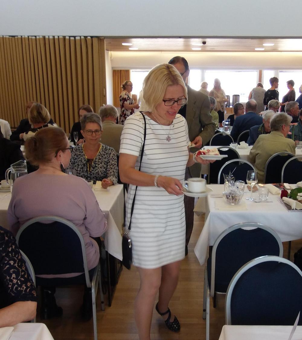 Yhdistyksen puheenjohtaja Päivi Liippola ja varapuheenjohtaja Erkki Kurtti vastanottivat vieraat. Tervetulomaljan jälkeen nautittiin erinomainen lounas. Perustajajäsen Hilkka Ojala piti koskettavan ja mielenkiintoisen juhlapuheen, jota hartaana kuunneltiin.